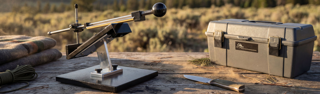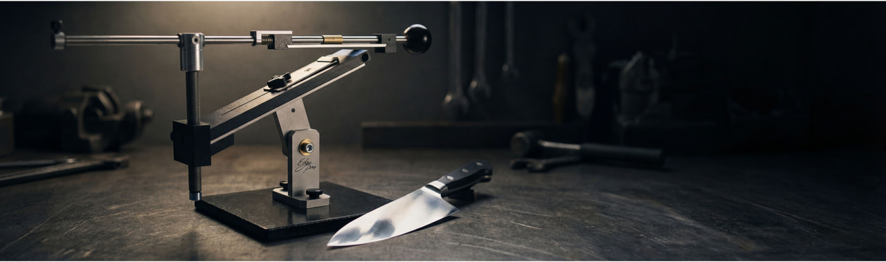 Edge Pro builds a complete knife sharpening system for people who care how their edges look and feel. Our professional gear keeps knives sharp at the bench—whether you're tuning up kitchen knives for service, maintaining a hunting knife, or resetting a chef’s knife that has seen hard use. With fixed-angle systems and quality sharpening stones, you can sharpen by hand and get a repeatable, razor-sharp edge that outperforms electric sharpeners and basic grinders when you want control instead of guesswork, and results you can see and feel every time.